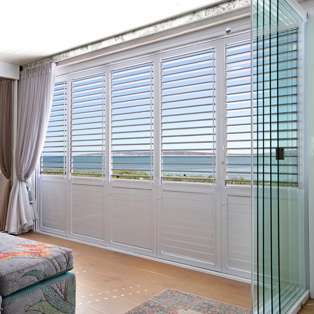 Our Aluminium Security Shutter Systems add to the visual appeal of your space while simultaneously providing you with a security solution. When closed, the shutters ensure complete privacy as the system makes use of manual louvres. We manufacture all materials and fittings locally with the use of advanced technology to guarantee a superior product.